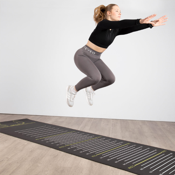 Face Saut en longueur : Zone de mesure graduée tous les 5 cm (de 1 à 3 m) pour évaluer la puissance des membres inférieurs.