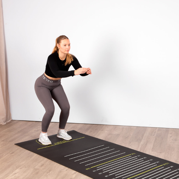 Face Saut en longueur : Zone graduée sur 3 mètres pour évaluer avec précision la puissance et les progrès des patients.